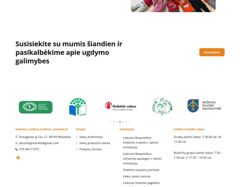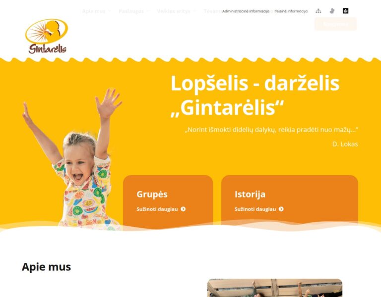 Stworzyliśmy przejrzystą, przystępną stronę internetową dla Przedszkola i Żłobka Gintarėlis w Mažeikiai, która pomaga rodzinom uzyskać dostęp