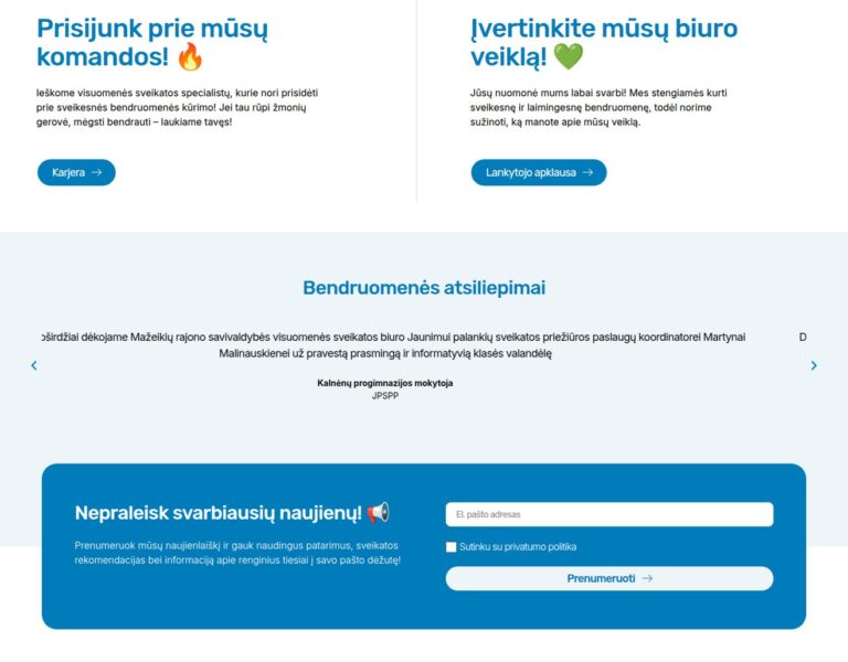 Stworzyliśmy nowoczesną stronę internetową dla Mažeikiai Public Health Office, aby ułatwić dostęp do informacji zdrowotnych, wiadomości i działań społeczności