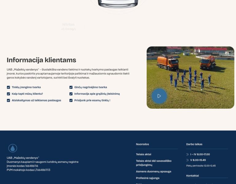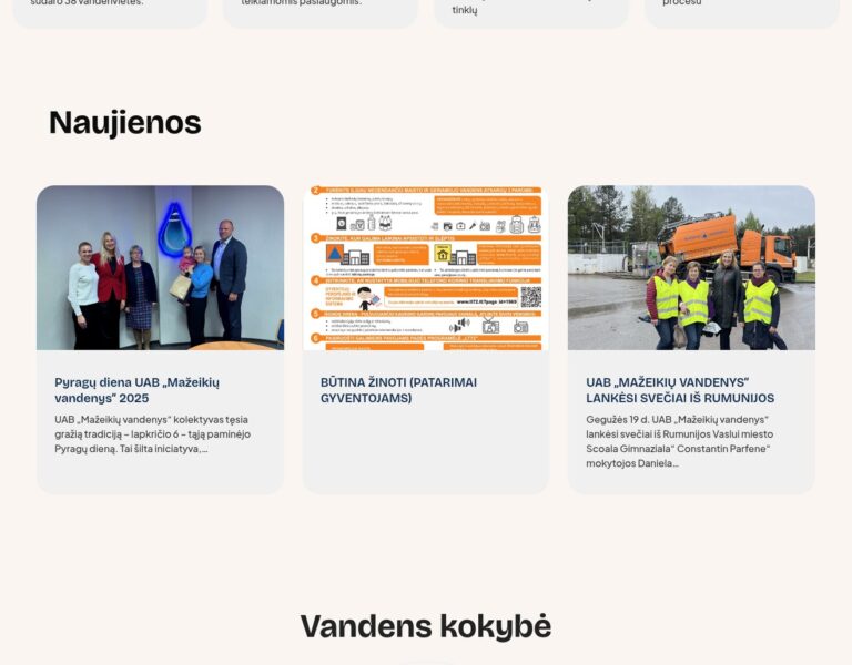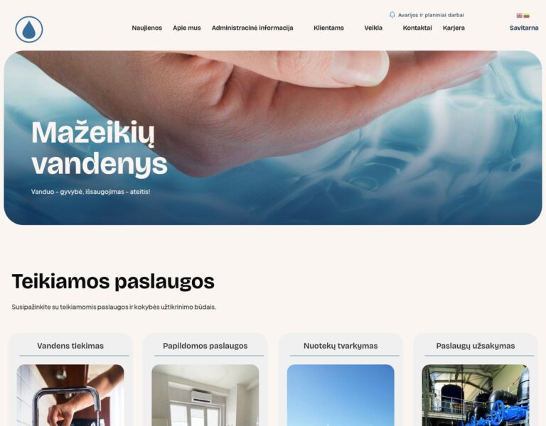 Zaplanowaliśmy i stworzyliśmy nowoczesną stronę internetową dla Mažeikiai Water Company, aby ułatwić dostęp do kluczowych informacji o zaopatrzeniu w wodę i gospodarce ściekowej