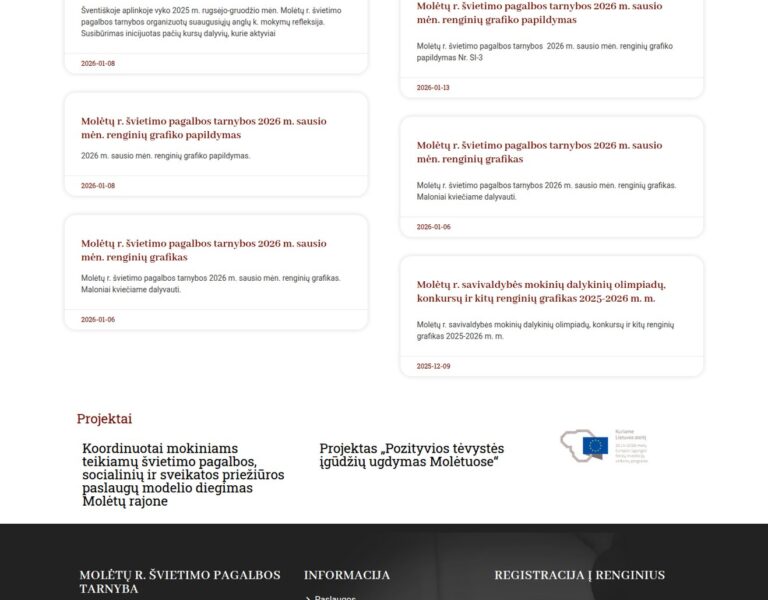 Zaprojektowaliśmy i wdrożyliśmy stronę internetową dla Molėtai District Education Support Service, która ułatwia dostęp do istotnych informacji