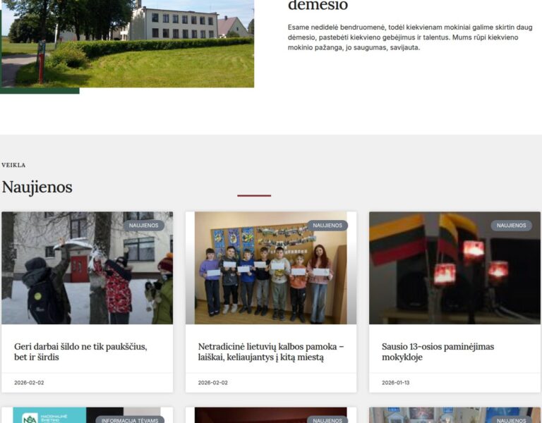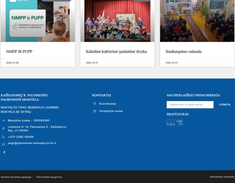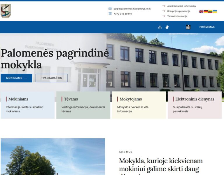 Zaprojektowaliśmy i wdrożyliśmy nową stronę internetową dla Szkoły Podstawowej w Palomenė w rejonie Kiejdan, aby uczynić najważniejsze informatio