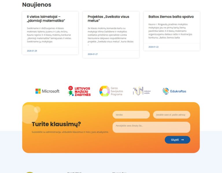 Stworzyliśmy nowoczesną stronę internetową dla Szkoły Podstawowej w Ringaudach w rejonie Kowna, która ułatwia dostęp do najważniejszych informacji