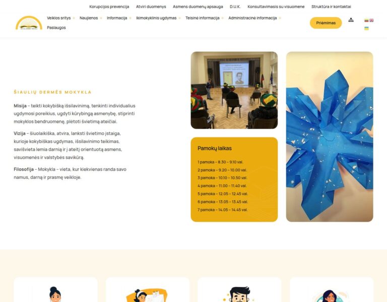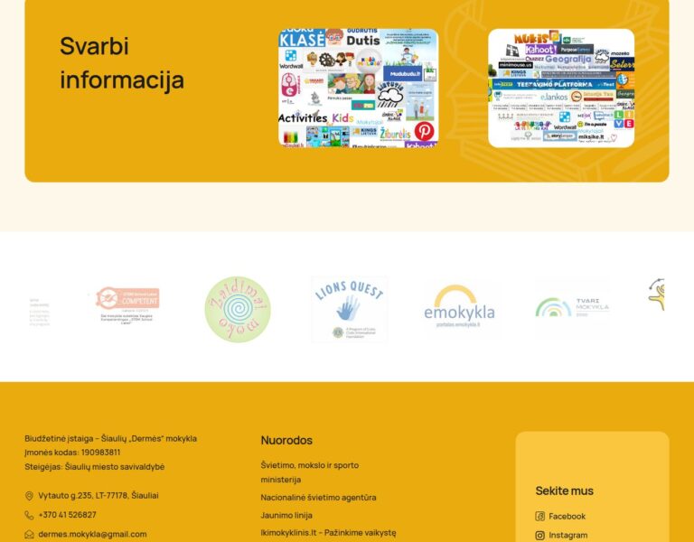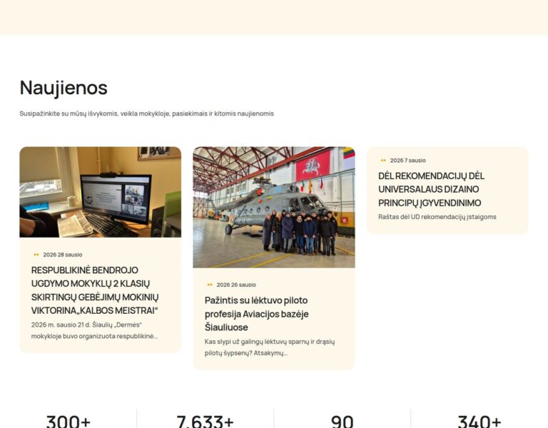 Zaprojektowaliśmy i wdrożyliśmy nowoczesną stronę internetową dla Szkoły Dermės w Šiauliai, aby w przejrzysty i dostępny sposób prezentować życie szkoły onli