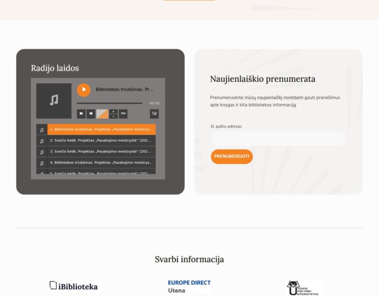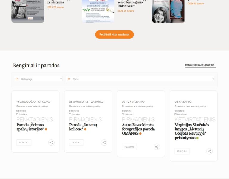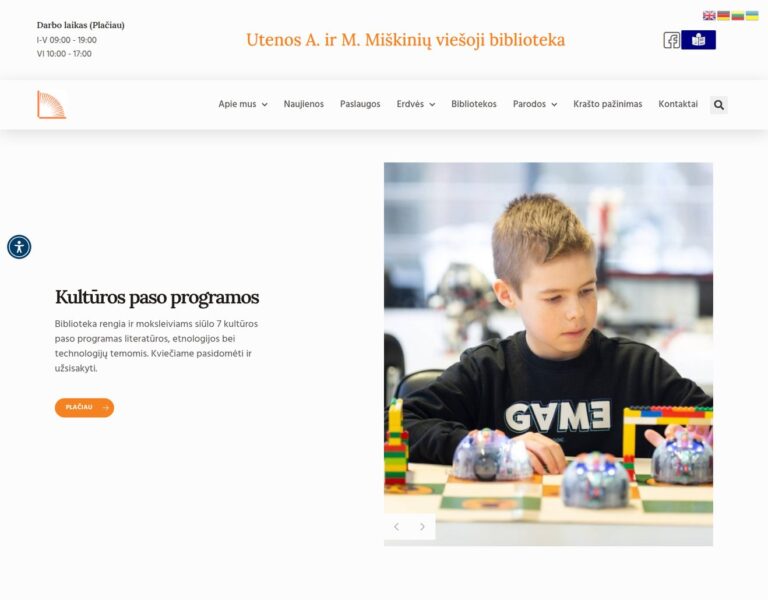 Przeprojektowaliśmy i opracowaliśmy nową stronę internetową dla Publicznej Biblioteki A. i M. Miškinių w Utenie, aby przedstawić jej usługi, wydarzen