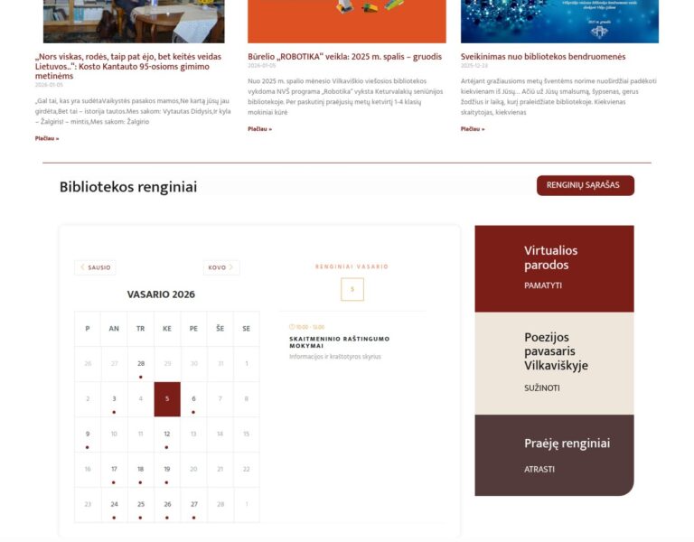 Zaprojektowaliśmy i zbudowaliśmy nową stronę internetową dla Publicznej Biblioteki Rejonu Vilkaviškis, aby ułatwić dostęp do informacji, usług i kultu